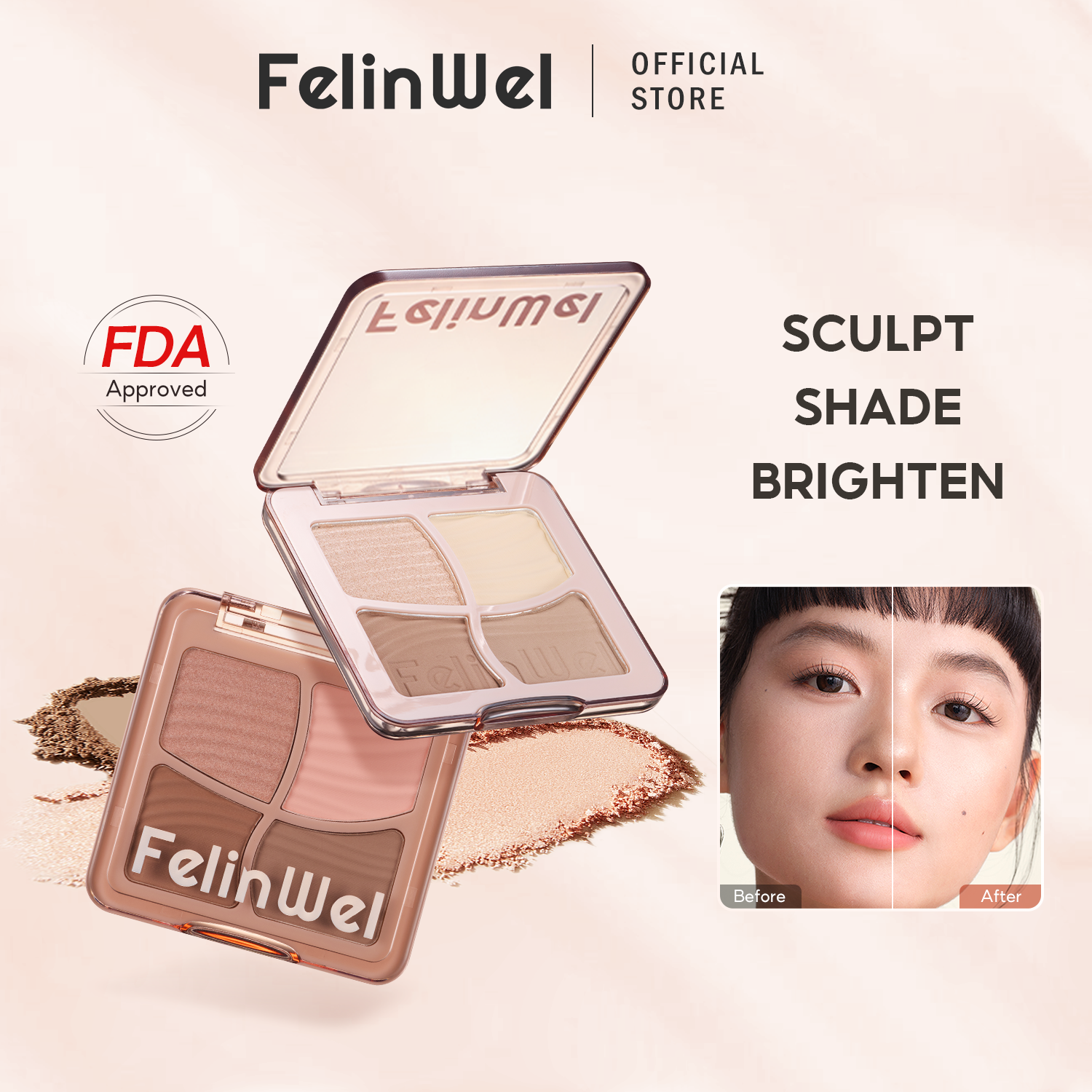 "four Colors in One Pallete; Highlights, Nose Shadows and contour"